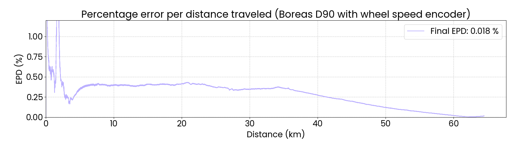 | Boreas + wheel speed encoder | 88m | 112m | 0.018% |