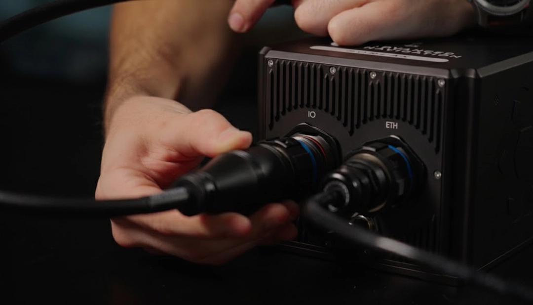 The acoustic signals in the Subsonus USBL system are encoded with data and contain multipath rejection filters inherent to the acoustic signaling. This allows information to be shared between the transducers, rather than a simple ping-response-fix scenario. To initiate the USBL2 system, the surface vessel Subsonus will emit an acoustic signal that the remote Subsonus will respond to. The surface vessel Subsonus will resolve the range and bearing of the remote unit and then acoustically send the absolute position and heading of the remote Subsonus to that transducer. Now, the remote Subsonus knows where it is in the world and in which direction it is headed. Additionally to this, the magnetic and gyroscopic heading sensors of the remote Subsonus are fused into the acoustically derived heading.
